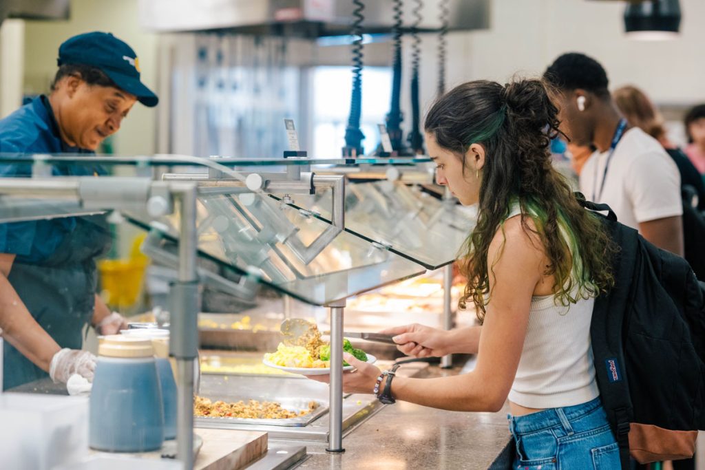 White says she helps students navigate the dining hall both figuratively and literally. “If you have a food allergy, if you have an avoidance, or if you have an intolerance, that’s where I step in. I always say I’m the students’ advocate.” She works on student accommodations, staff training related to food allergies, and educational wellness sessions. She’s even starting a newsletter for students.