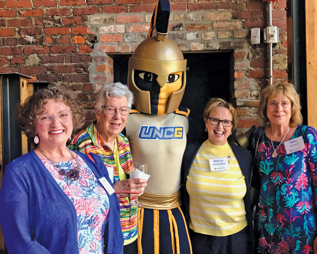 Middle center: A group of Well-Spring WC graduates and friends of UNCG made a special visit to campus to celebrate the completion of the WC Tribute. (l-r) Jeanne Singleton ’56, Sara Stuart ’56, Judy Hyman ’56, Fay Arnold, Betty Watson ’65, Lynette Wrenn ’49, Diane Gabriel, Phyllis Goldman, and WC Tribute committee members Sarah Shoffner ’62, ’64 MS, ’77 PhD and Emilie Mills ’62, ’65 MFA